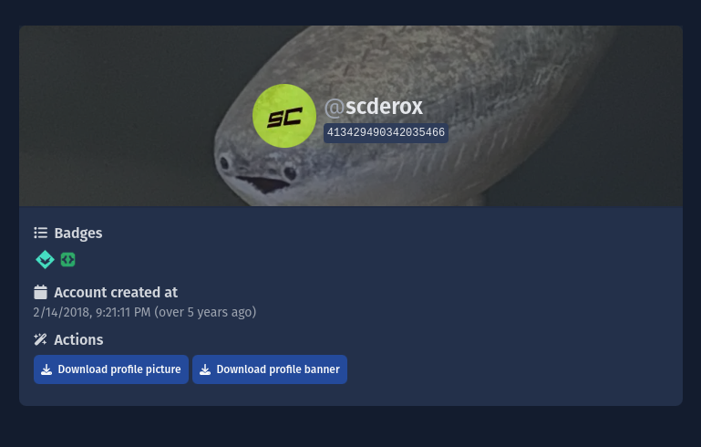 Next, enter the ID in the User-Lookup tool. Click on "Fetch user" to finish your request. You'll be shown details about the user and can download their banner and profile picture (if applicable). Here's how the result will look like: