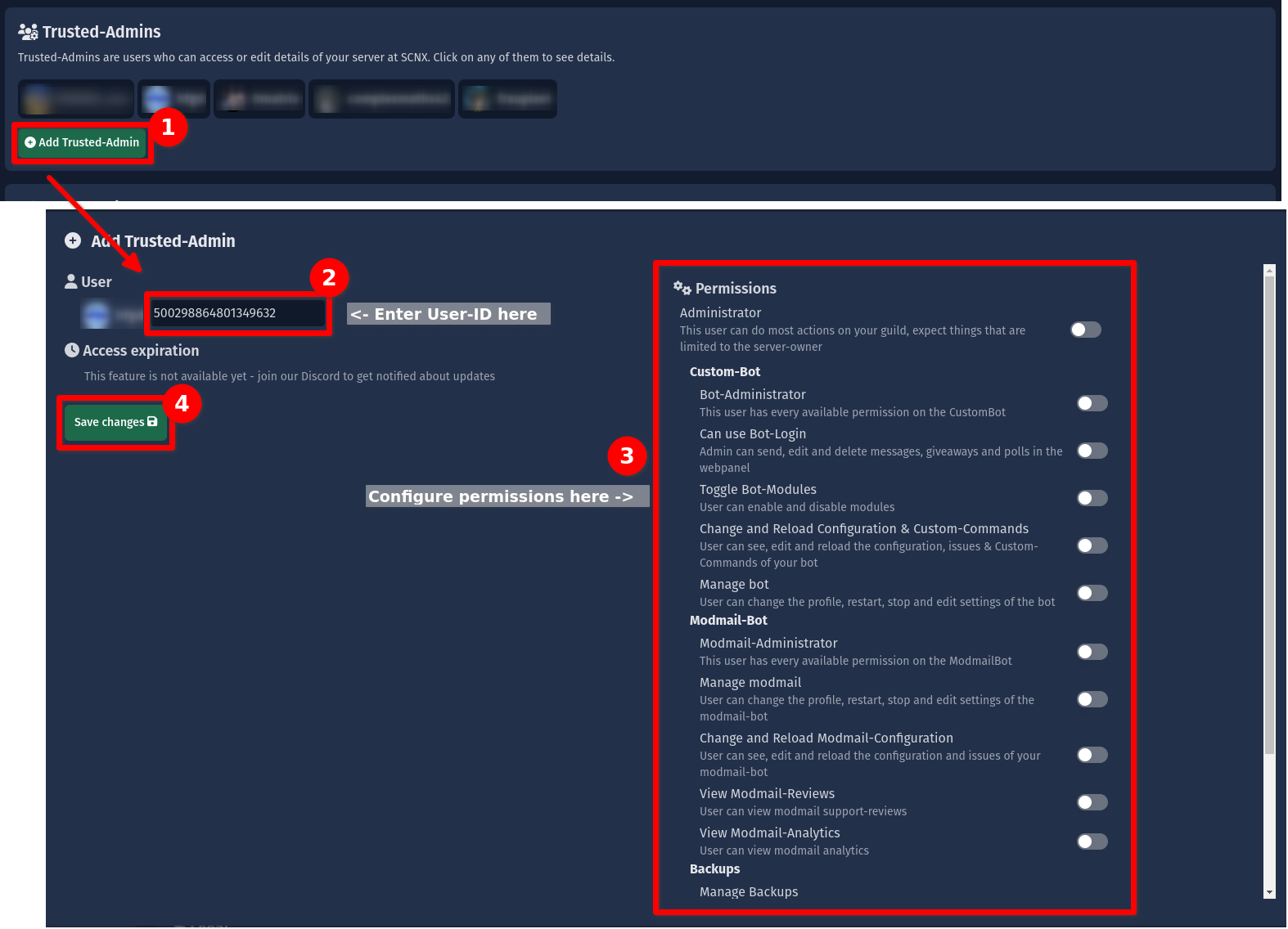 My Trusted-Admin can not set up a Custom-Bot, Modmail-Bot, …